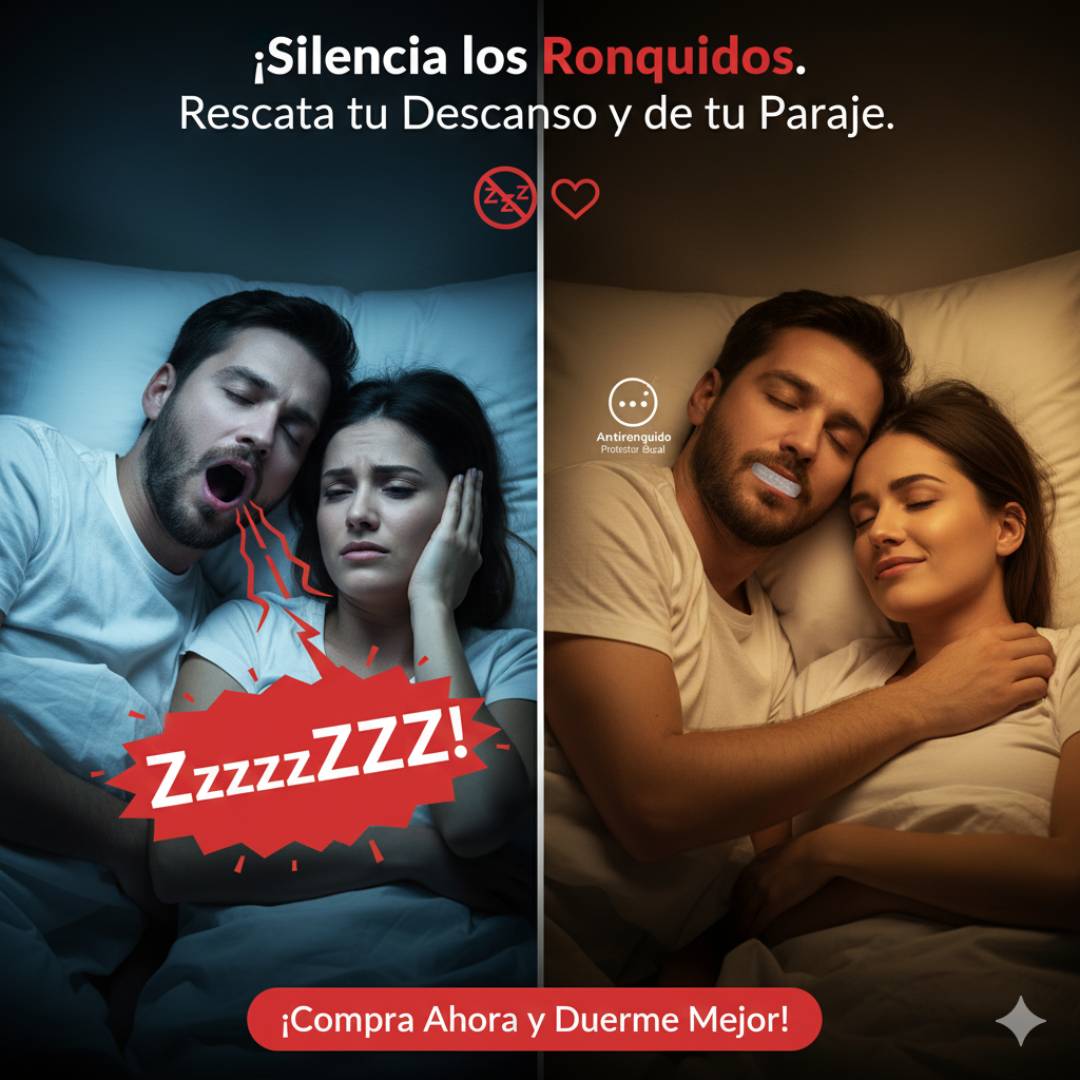 Ponte el Protector Bucal Anti-Ronquido antes de dormir: adelanta suavemente la mandíbula, abre el paso de aire y reduce la vibración de los tejidos que causan el ruido. En minutos sientes respiración más libre y noches más tranquilas—para ambos.