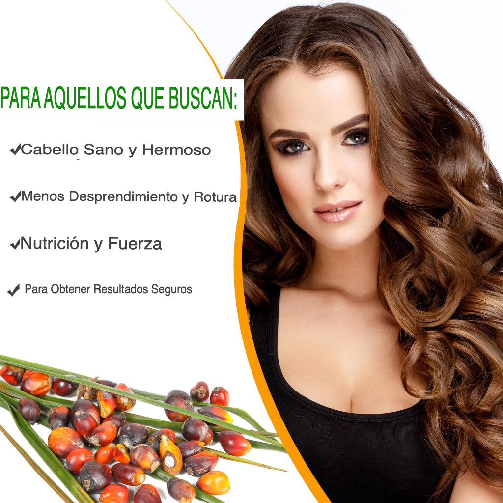 Aceite de batana (Elaeis oleifera), rico en omega-9, vitamina E y antioxidantes; sin parabenos ni siliconas.
