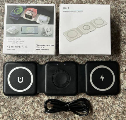 Base de Carga Inalámbrica 3 en 1 – Apple | Android – Diseño Magnético y Plegable ⚡📱