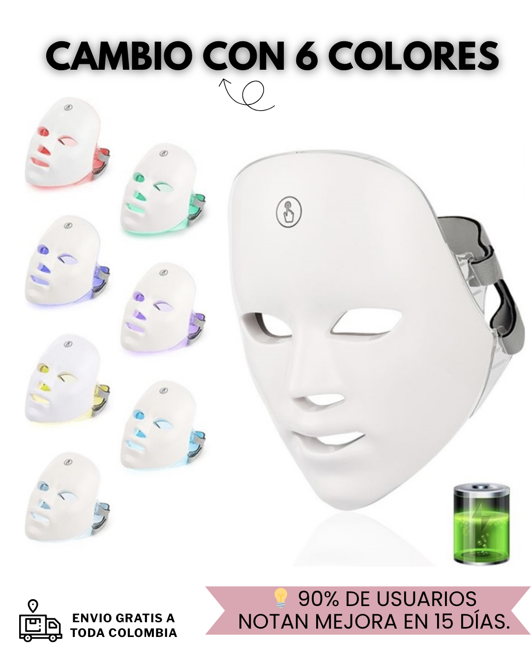 Limpia tu rostro, elige el color LED y usa 15-20 min diarios.