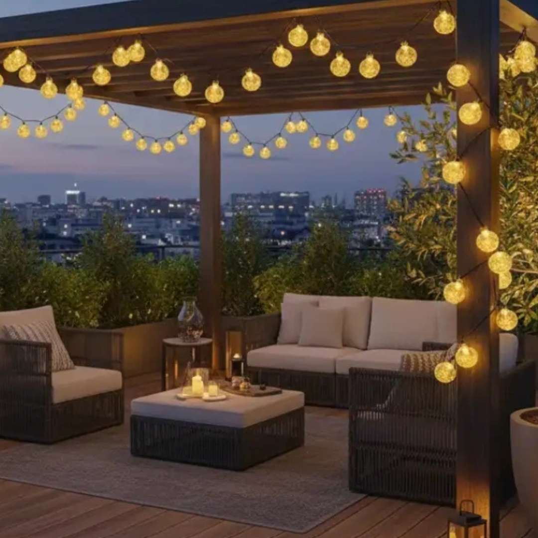 Fabricadas con resistencia IP65, estas guirnaldas soportan lluvia, polvo y sol. La decoración exterior perfecta para todas las estaciones